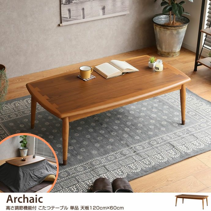 【送料無料】【天板 120cm×60cm】Archaic 高さ調節機能付 こたつテーブル 単品
