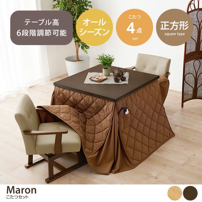 【送料無料】【4点セット】Maron 幅80cmダイニングコタツ+こたつ布団+チェア2脚