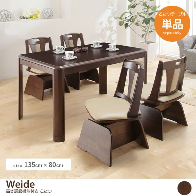 【送料無料】Weide 高さ調節機能付き こたつ本体のみ 135×80cm