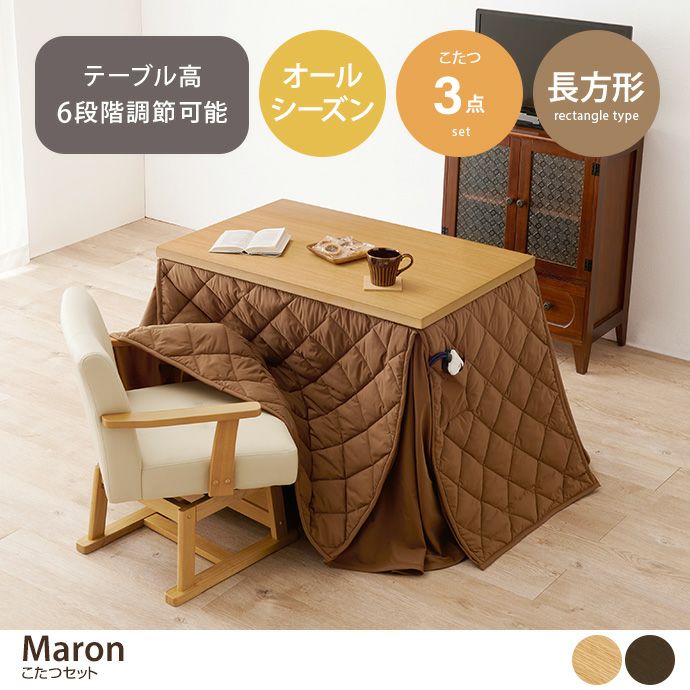 【送料無料】【3点セット】Maron 幅90cmダイニングコタツ+こたつ布団+チェア1脚