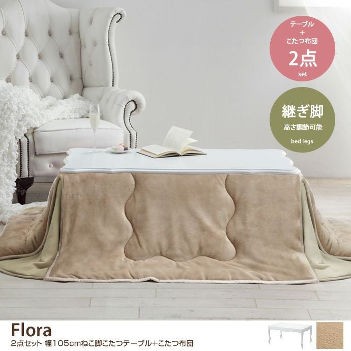 【送料無料】【天板 105cm×60cm】Flora 猫脚こたつテーブル&こたつ布団セット