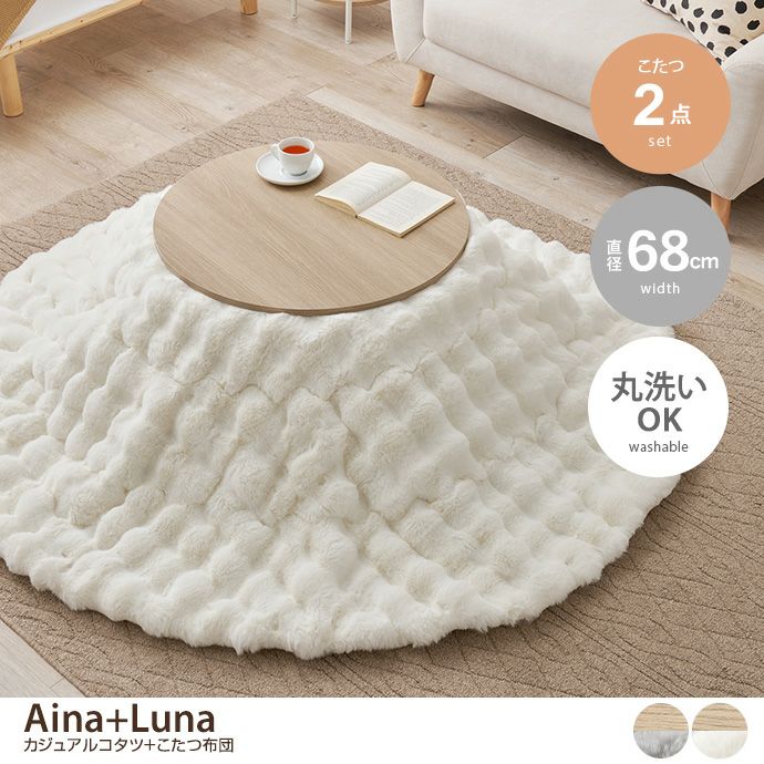 【送料無料】【円形:天板 68cm】Aina+Luna カジュアルコタツ+こたつ布団