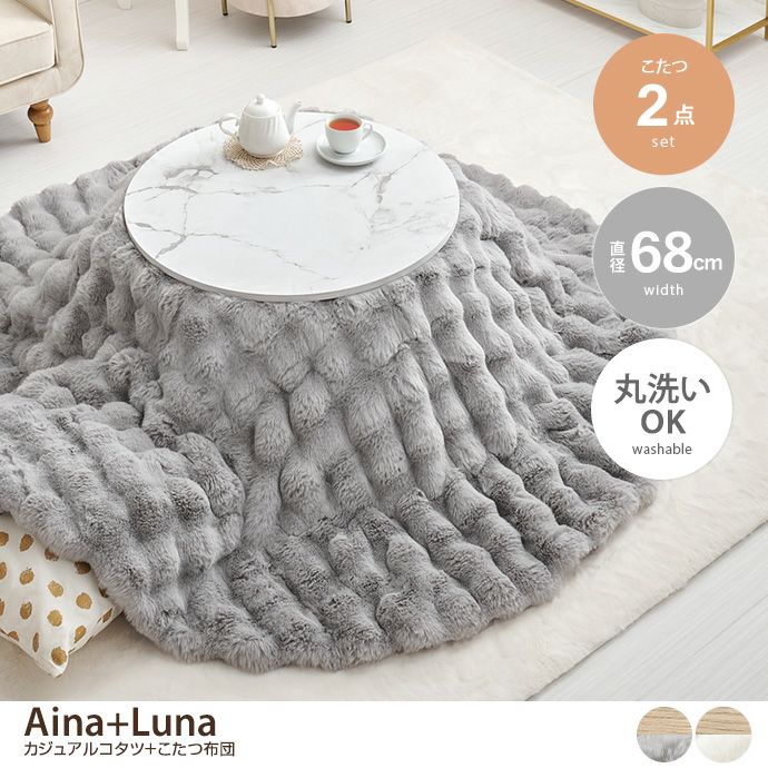 【送料無料】【円形:天板 68cm】Aina+Luna カジュアルコタツ+こたつ布団