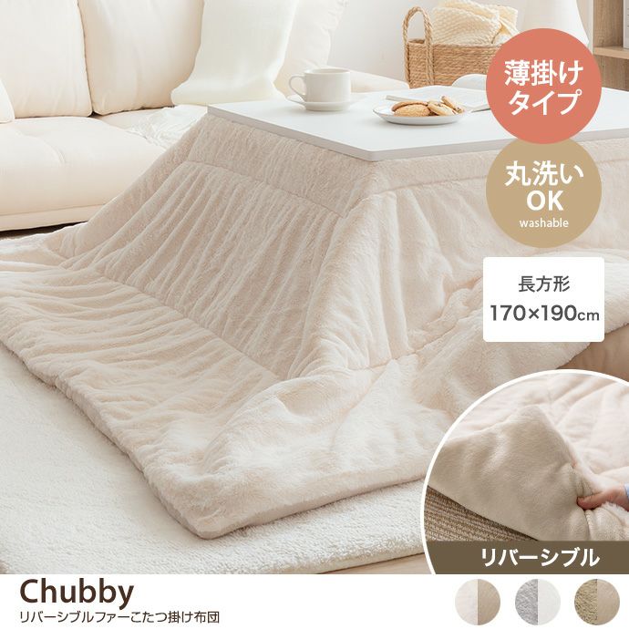 【送料無料】【長方形:170cm×190cm】Chubby リバーシブルファーこたつ布団