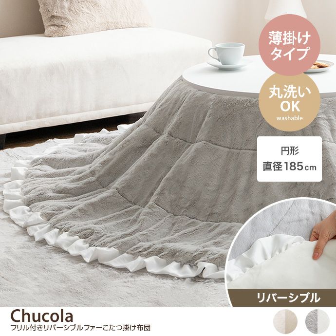 【送料無料】【円形:197cm】Chucola フリル付きリバーシブルファーこたつ布団